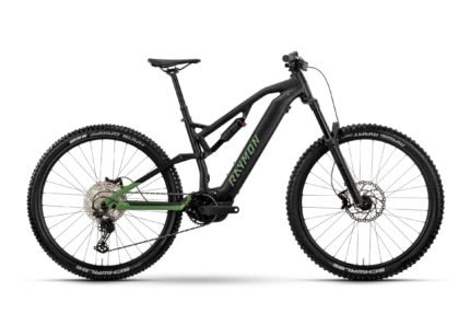 Raymon Trailray 150 (2025) | 29-Zoll-E-Mountainbike mit Vollfederung | Schwarz / Resedagrün / Zitrone
